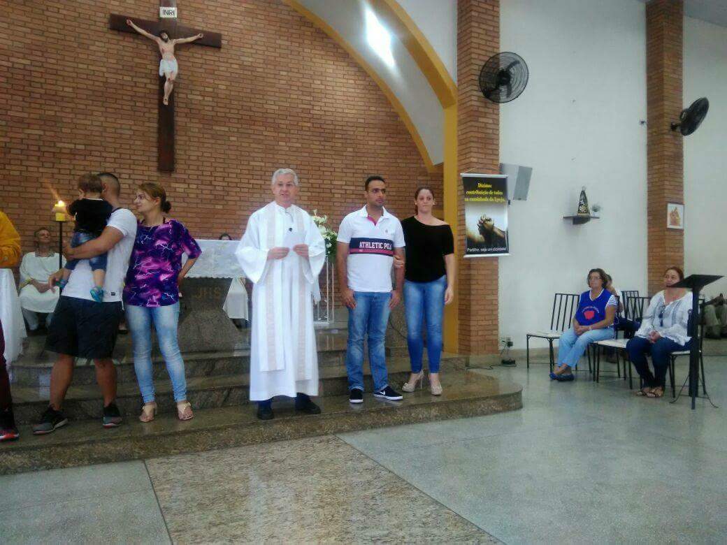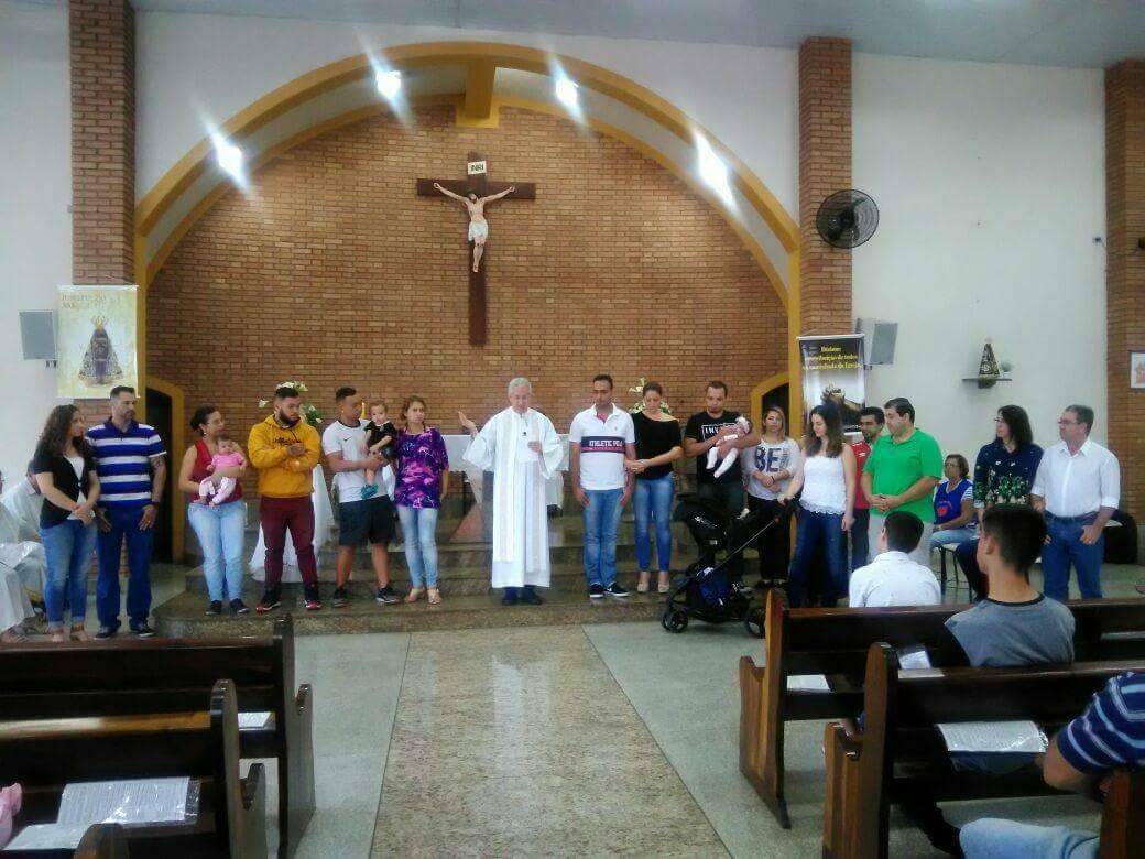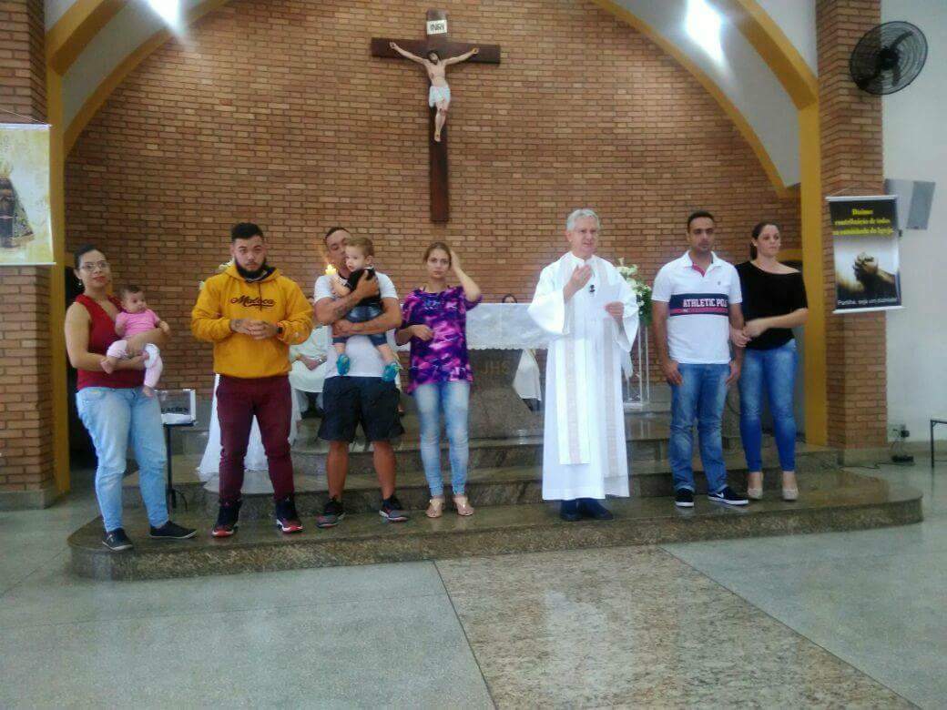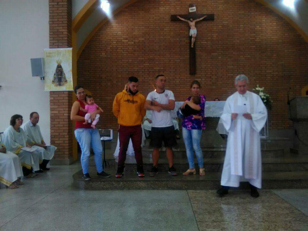 Nas Missas de sábado, 4 e domingo, 5, foram acolhidas várias famílias que estão se preparando para o Sacramento do Batismo de seus filhos e afilhados, na Comunidade São João Batista. Essa acolhida na Comunidade faz parte da nova preparação para o Batismo.